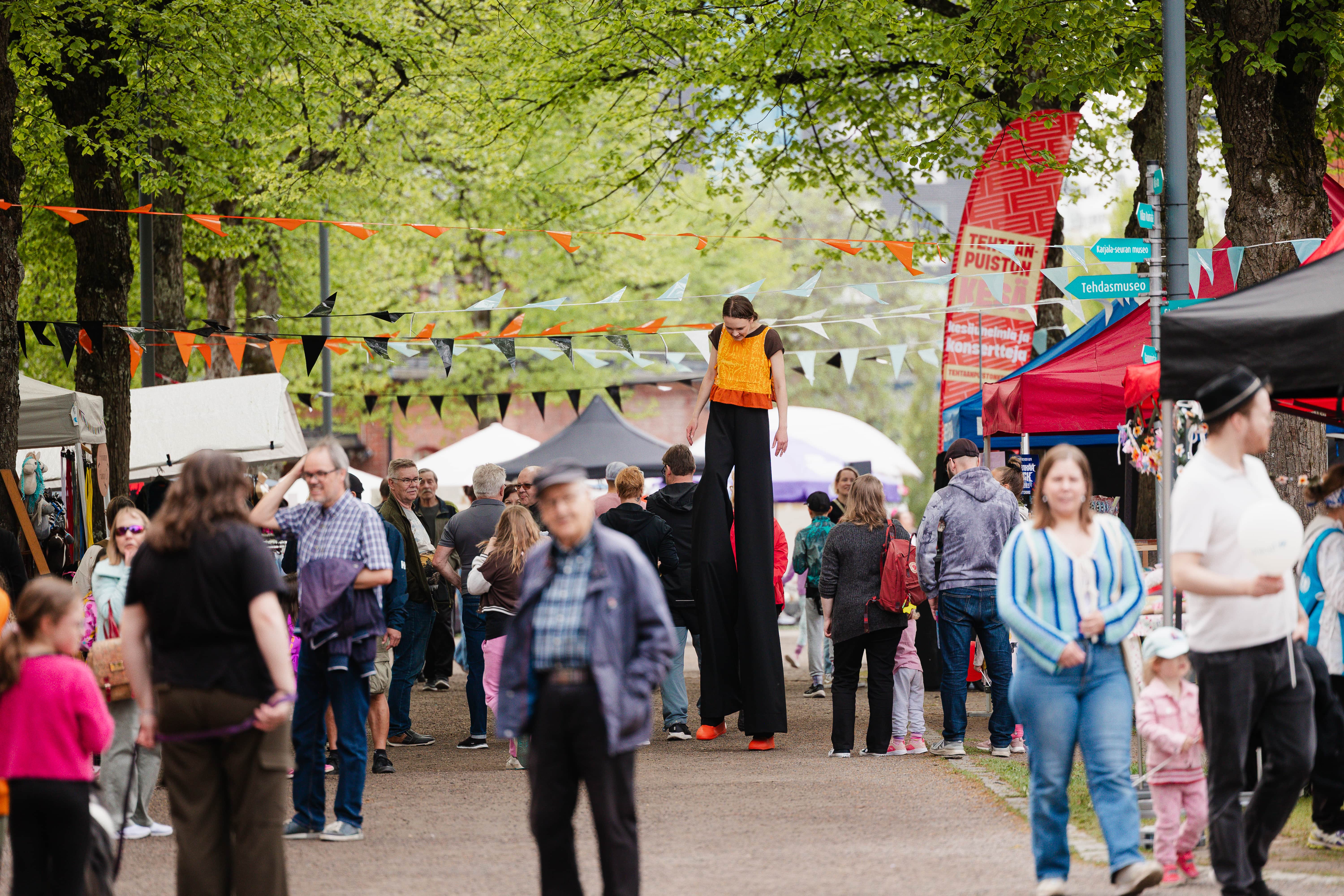 Alue-esiintyvät taiteilijat kiertelevät tapahtuma-alueella luoden tunnelmaa ja viihdyttäen yleisöä erilaisilla taidoilla, kuten jongleeraten, tasapainoillen tai kolmimetrisenä hahmona kierrellen.